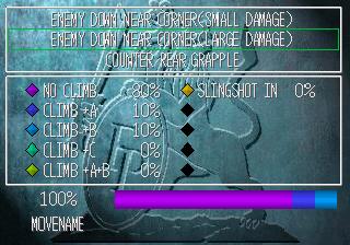 | All of the CPU logic is done now as well, including the only move names that exist outside of 1ST.BIN , the running opponent dodge move. Its based on the wrestling style you choose. Now to finish the move list! | |||