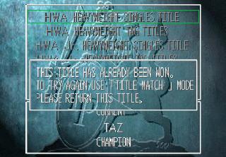 | So the move list is about 50% done, maybe closer to 60% there are A LOT OF MOVES. I also added F! for the Finishing move, and S! for the Signature move, and a speech bubble icon for the moves with voices assigned to them Finished the title match mode text, and the warning about not being able to redo the victory without returning the title: and I found the strings for setting up the computer AI: | |||