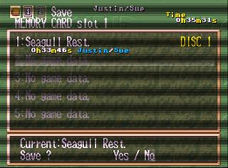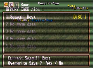 Yes on the PS1 it is split it says save and overwrite I just double checked also in the PS1 version the music doesn't cut out it continues on the save screen too | ||||