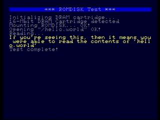 | ROMDISK support has been added ARP support has been added Who needs CD-ROM support now? The idea is that you load your executable, initialize the 32-Mbit cartridge and send the actual ROMDISK file system through PAR and into load it into the cart. On a serious note, after I implement a (basic) version of ISO9660, I'll start adding support for it. | |||