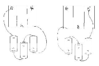 | Hrmmm, well dont have any extra D cells laying around... actually aint got shit laying around. SO, here is a crappy bitmap showing you what its all about. just picture this as looking at the back of a GG, and the curved lines are wire... just use whatever youd like to stick em' to where you want. I wrapped the tips of wire with tin foil then used electrical tape to stick em there then wrapped the packs of three batteries together with e tape. I was the king of mickey rigging when i was young... wait i still am. oh yeah.... ^ that ways up | |||