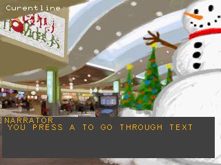 Kriss MingleMy team made a Visual Novel called where you meet and date Mall Santas.Or at least that was the idea. we had so many speed bumps during development that this version we're submitting was made in only 3 days, so don't expect a lot. CreditsGraphics - DreamcastFreakMusic - Sharkhat Programming - Me ControlsStart - Starts Novel from Title ScreenA - Progress Story (Submitting Both Music and Non-Music versions because I could only test the latter. Hope the former works!) EDIT: I should mention, after getting so many questions about it. The game will just end abruptly on a question. The game has not crashed, I just wasn't able to implement the decision mechanics in time | |||