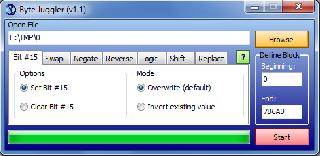 | | This program allows you to perform the most popular operations with bytes (swapping, replacement, logical actions, shift, etc.). The output file is assigned a new extension, which is the code of the operation performed (tab number + action number). Changes in version 1.1: ___________________ ____ - Added progress indicator; - Added the ability to select the processing range;