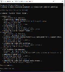 Original SFD video files should be placed in the folder, along with their accompanying SRT subtitle files. Note that Dreamcast FMV Auto-Subber expects the base file name for both the SFD and SRT files to be identical. For example, a video named should have a subtitle file named or . Once all original SFD video files and their accompanying SRT subtitle files are placed in the folder, can be launched. The program will display status updates as it performs the re-encoding of each video file. Once complete, all new SFD video files will be placed in the folder, ready for use. Example Output |