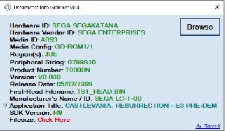 | |  This app will pull various info from the track03.bin or track03.iso that is part of a GDI RIP of any official Dreamcast game as well as try to determine which SDK was used to create it. The WinCE games SDK versions isn't very accurate unfortunately but that's not the case for regular games. A big thank you to mrneo240 for all the SDK info that i didn't have access too  |