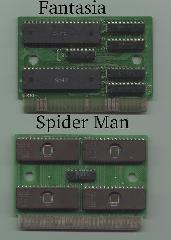 Fantasia has a pretty unusual layout (a stupid one I'd think, the amount of chips used doesn't make it very cost effective for such a small game), haven't seen that yet.. seems to use two 256 kb 16 bit eproms. it's also missing pins on the edge connector, which means you most likely won't be able to wire it up for anything higher.