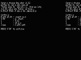 | Check http://phemusat.tripod.com/... for new version with controls emulation and "cleared GFX". Also uploaded lastest source of Jim emulator with real GFX emulation via Allegro lib. So, anyone for GFX? To TakaIsSilly: Only use ClsSlo() in this release, ClsFast() included, but not used (because can't figure where is characters screen table), but just for experiment tryed such stuff: ASCITile = (Uint8 *)( VDP2_VRAM_A0 ); //need to know propertly location of characters table memory for(i = 0; i <= 0x60000; i++) *(ASCITile++) = 0x00; } It's of course, somewhat (no garbage, but dont clear previous screen gfx) works, but it clears almost ALL VDP2 memory... Screenshots: | |||