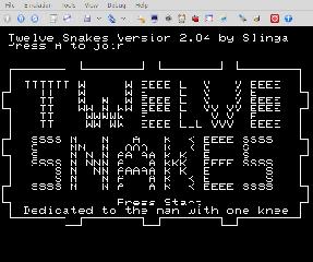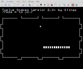 | Edit: I pushed Twelve Snakes 3.0.0 to github: slinga-homebrew/Twelve-Snakes.... It includes: - game modes - fixes to the score display - hud that display score information around the game field 15 years in the making, presenting Twelve Snakes 2.0.4: - Changed resolution to support wide screen -- Use the zoom feature (not 16:9) in your television -- The top text and the bottom empty space will be cut off but the game area will take up the entire TV -- Aspect ratio looks correct - Ported to Jo Engine - Various bug fixes and compiler warning fixes Let me know if you have any issues. | |||