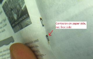- I do not know, but clearly in 50% of my Saturn and Dreamcast games corrosion started where the staples are in close contact with the paper, e.g. where it pierces the stack of pages. The parts exposed to air comes second, when the state of corrosion is more advanced.