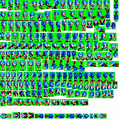How would you get the individual sprite frames out of the sprite sheets without texture coordinates? They're not stored like your typical sprite sheet on the Saturn where each frame is it's own individual image concatenated together. It's one giant 512x512 image with all the frames stored in it: At the very minimum we'd need to rework these to be in a format that can actually work on Saturn. You could possibly do software texture coordinates on the CPU to cut each frame out and send to VRAM, but that could add a lot of unnecessary overhead on the CPU. | ||||